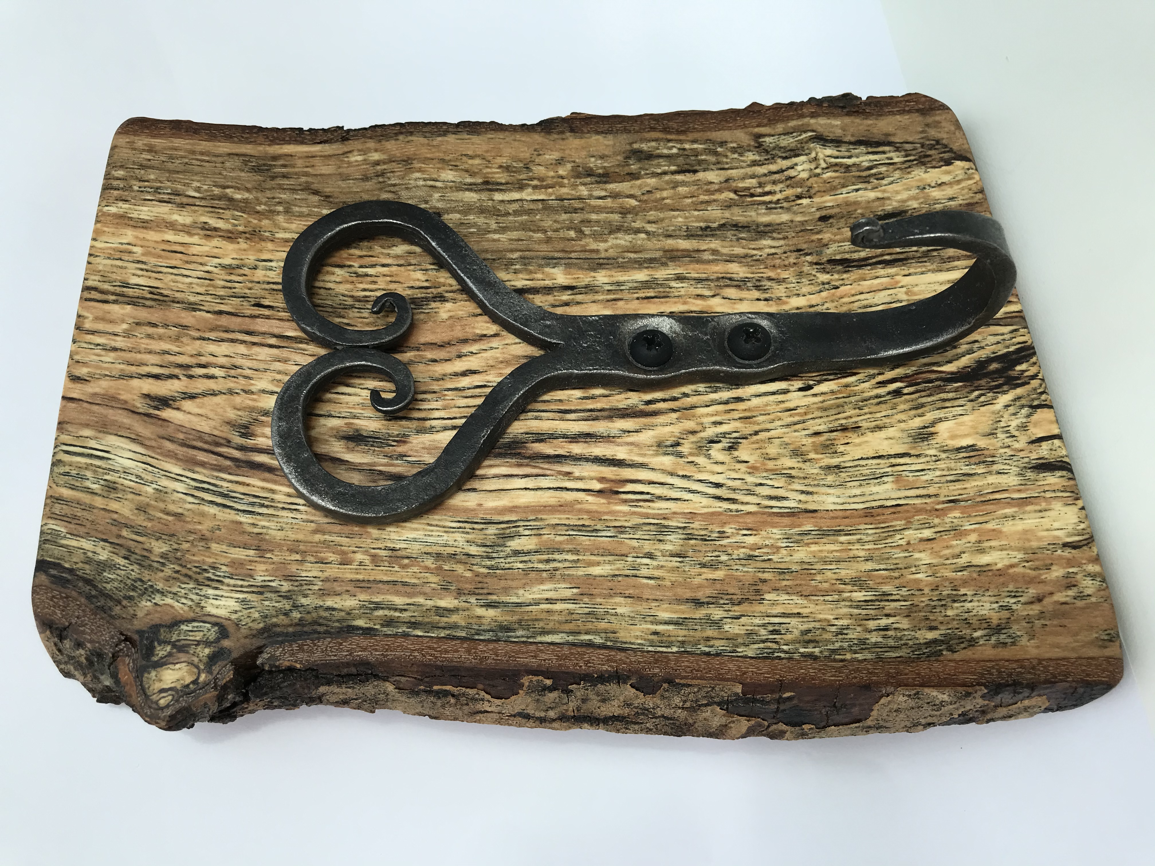 Presenting hand forged hook by Y Smythy, Aberystwyth.